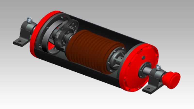 TDY型油冷式電滾筒是我國目前廣泛采用的普通型電滾筒。滾筒電機由專業的電滾筒電機廠配套,其性能指標不低于同等功率的我國Y系列電機的指標。該系列滾筒齒輪采用表面磨齒處理,具有結構緊湊,運行平穩,噪音低 ,安裝方便等優點。廣泛應用于礦山、港口、熱電、冶金、建材、混凝土等各部門的中小型帶式輸送機。